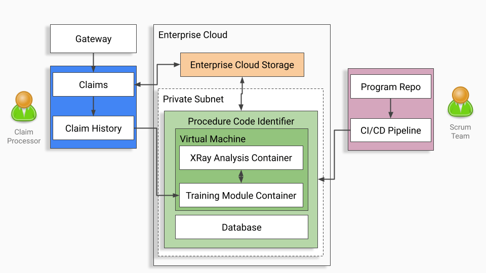 | Develop a project plan outlining timelines, resources, and key milestones. | Integration: Create API to integrate the ML model with the existing claims adjudication system. The API will receive X-ray data and return procedure codes with confidence ratings. | Monitoring and Optimization: Continuously monitor the system’s performance and accuracy. Optimize the model and integration based on real-world data and user feedback. | Innovation and Upgrades: Explore opportunities across enterprise (Medical, Behavioral, Pharmacy claims), including potential integrations with other AI technologies and expanding functionality. |